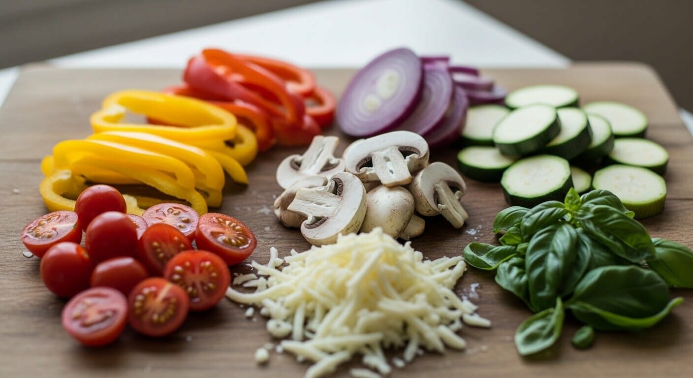 Інгредієнти для вегетаріанської піци різноманітні, і чистий смак кожного важливий: