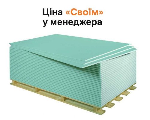 2. Вологостійкий (ГКЛВ) — підходить для ванних кімнат, кухонь та підвалів. Має спеціальне водовідштовхувальне покриття, яке захищає від намокання і появи цвілі.